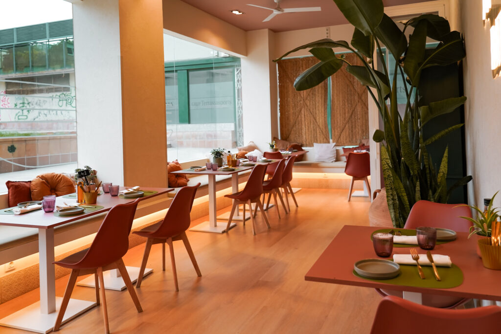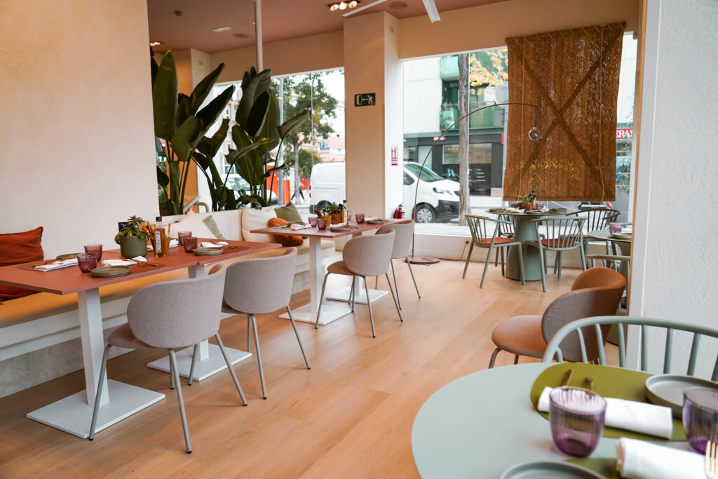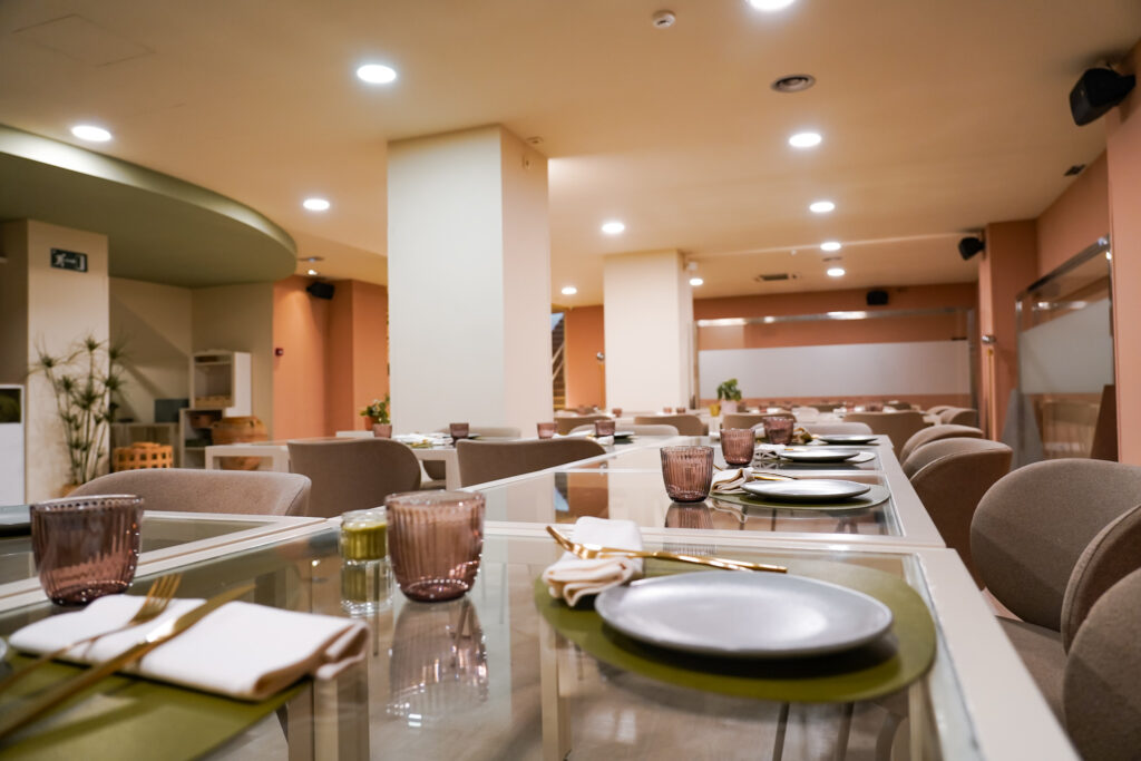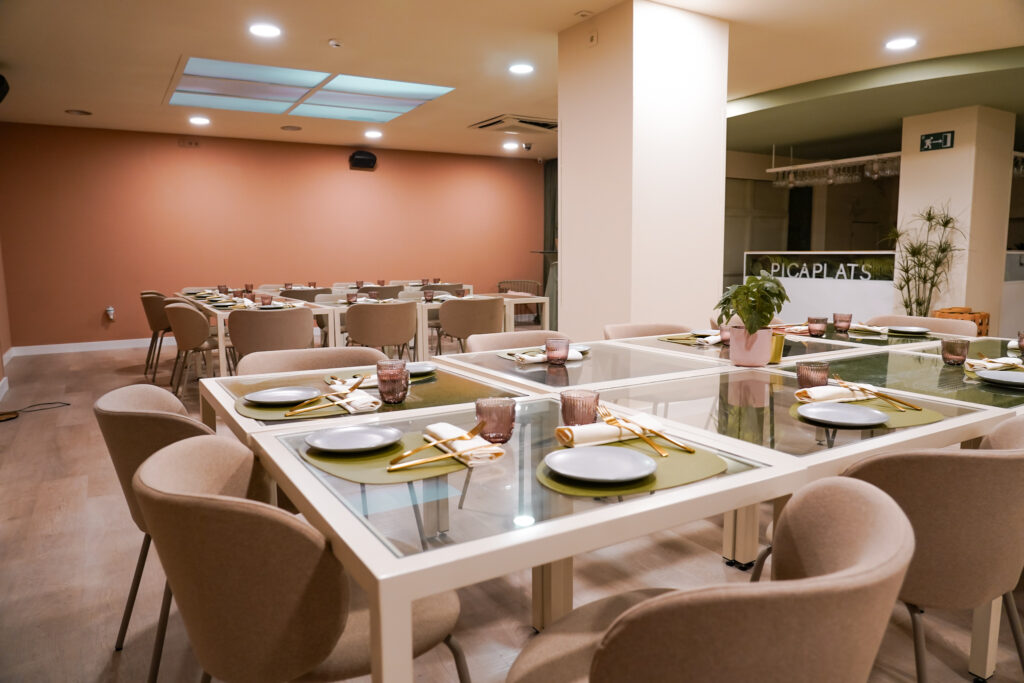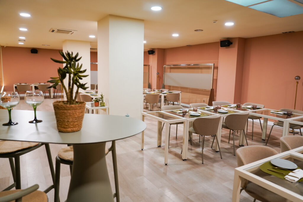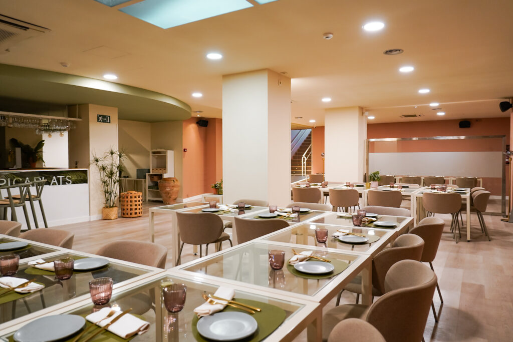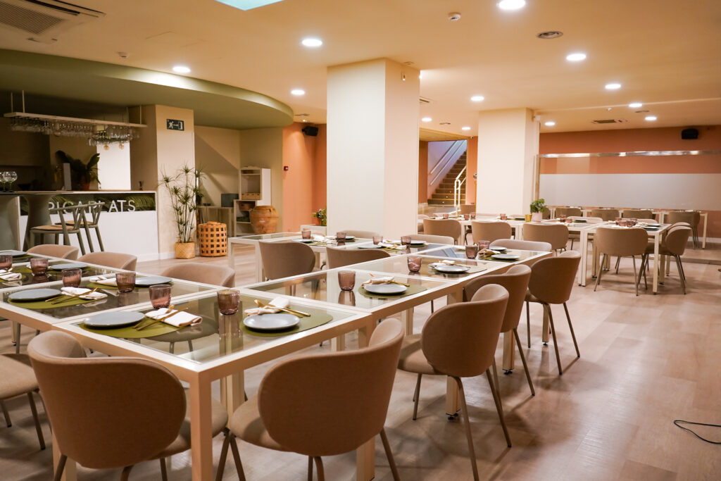 Menjadors lluminosos i molt color, gran espai per a grups i reunions, i espais exclusius per a trobades de treball, familiars o amb amics.
