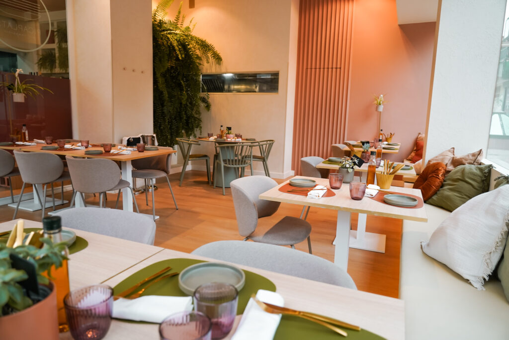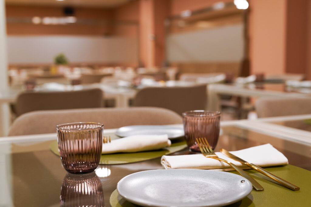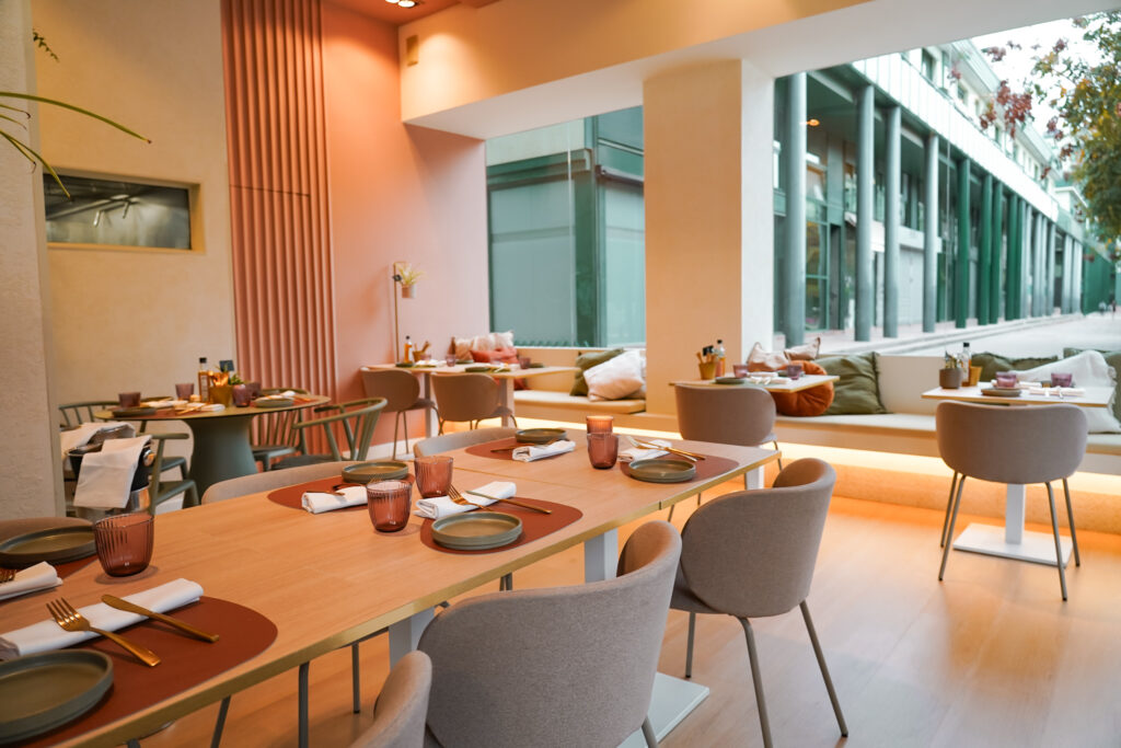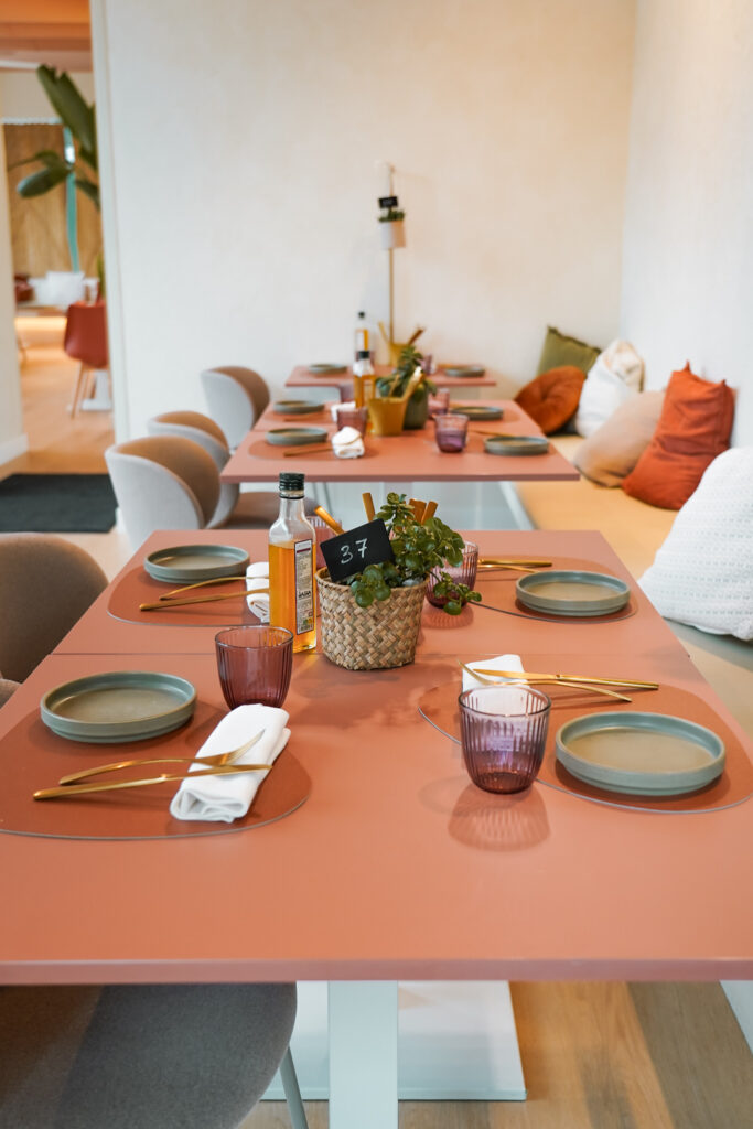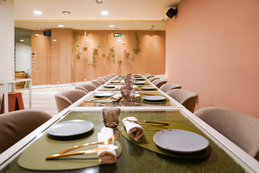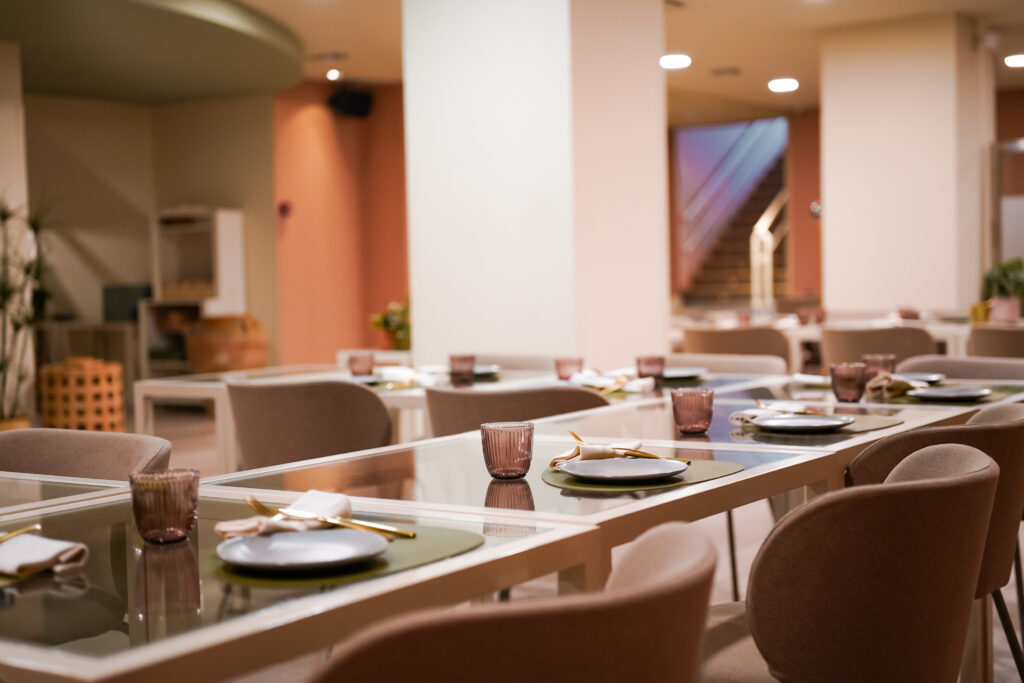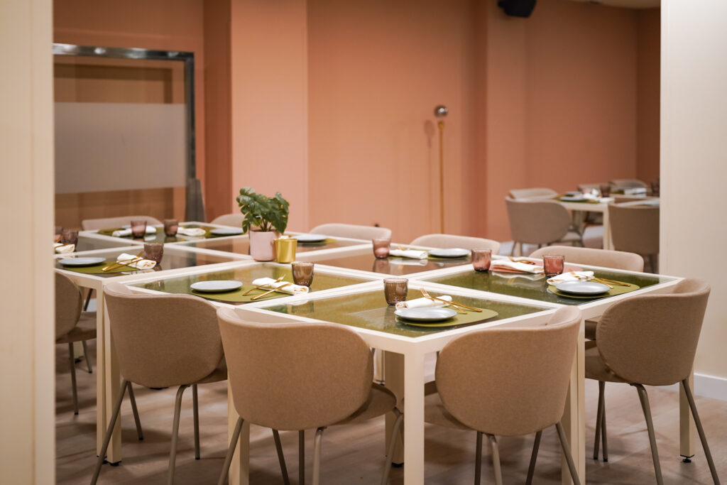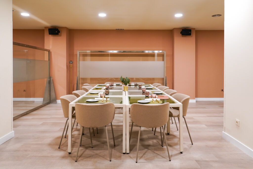 Menjadors lluminosos i molt color, gran espai per a grups i reunions, i espais exclusius per a trobades de treball, familiars o amb amics.