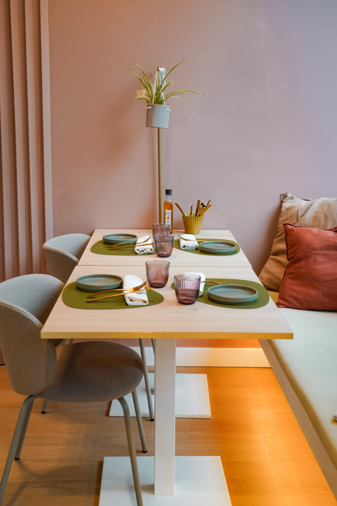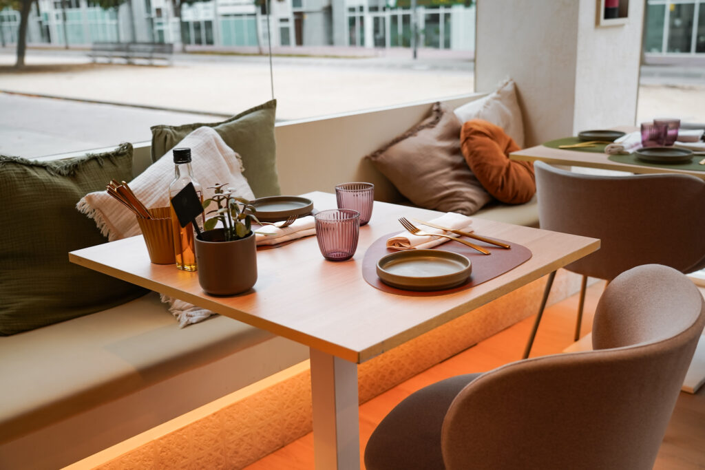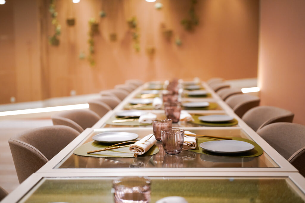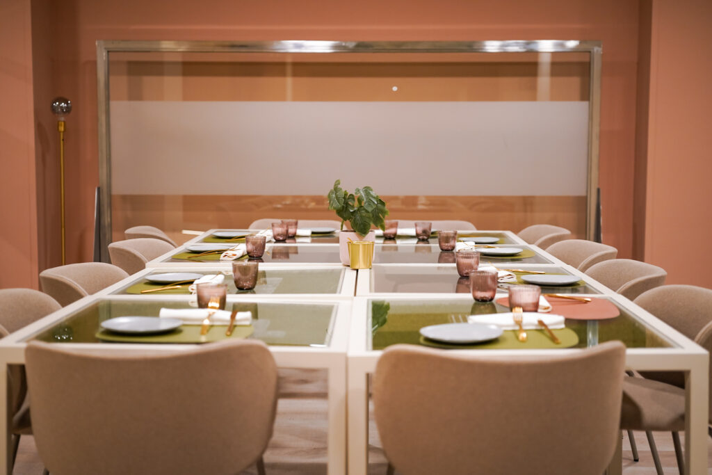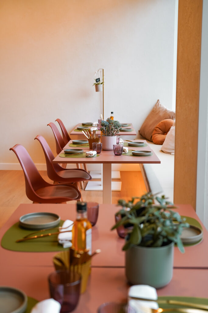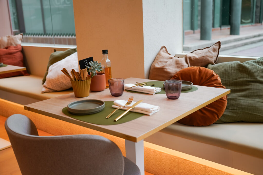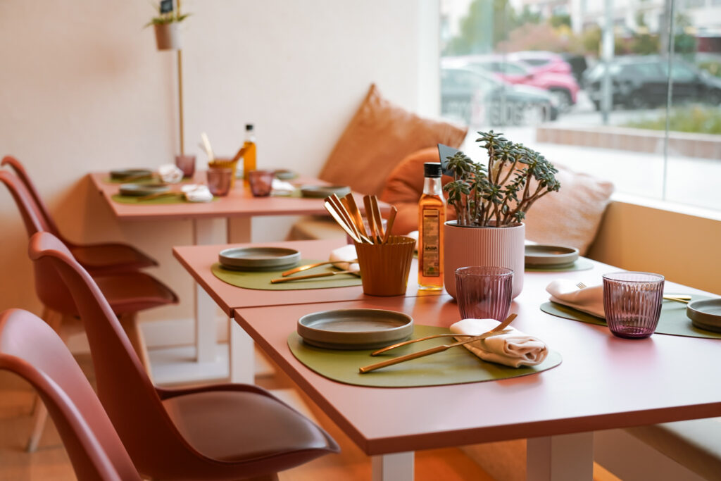Menjadors lluminosos i molt color, gran espai per a grups i reunions, i espais exclusius per a trobades de treball, familiars o amb amics.